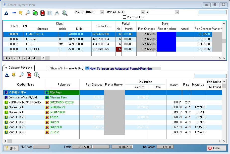 oThis highlight (found on the "Period Month" column) indicates that the period has been inserted by the PDA, is indicated on the payment plan with a suffix of "-50" on the period month (e.g.an inserted period for period 2015-11 will be 2015-11-50).