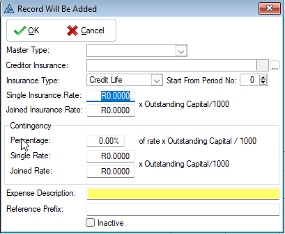 Third Party Insurance Parameters: -Added "Override Account Code" option to the "Override Credit Provider Insurance" window which allows insurance rate overrides to account types such as "UT", "UF", "SPV" etc.