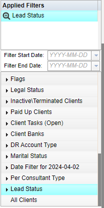 - Fixed bug where terminated clients were included in the active leads filter