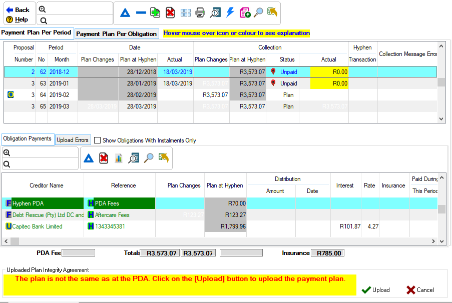 ·All changes made to the payment plan must be uploaded to the PDA in order to acknowledge new changes made to the payment plan.